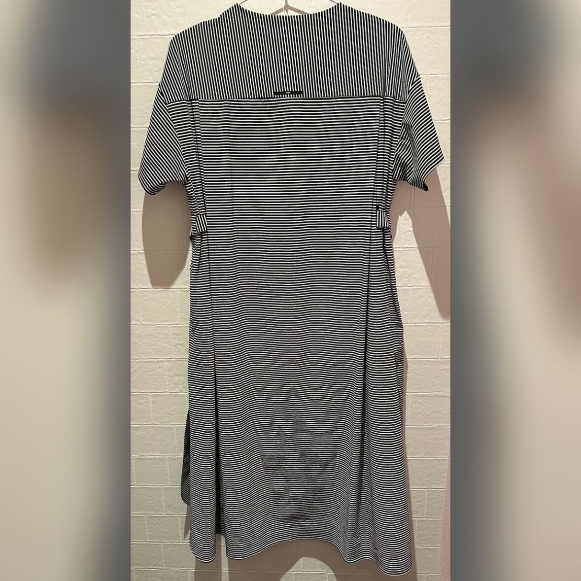 ・ホワイト×ネイビーストライプの落ち着いた配色が魅力のボーダーワンピース。