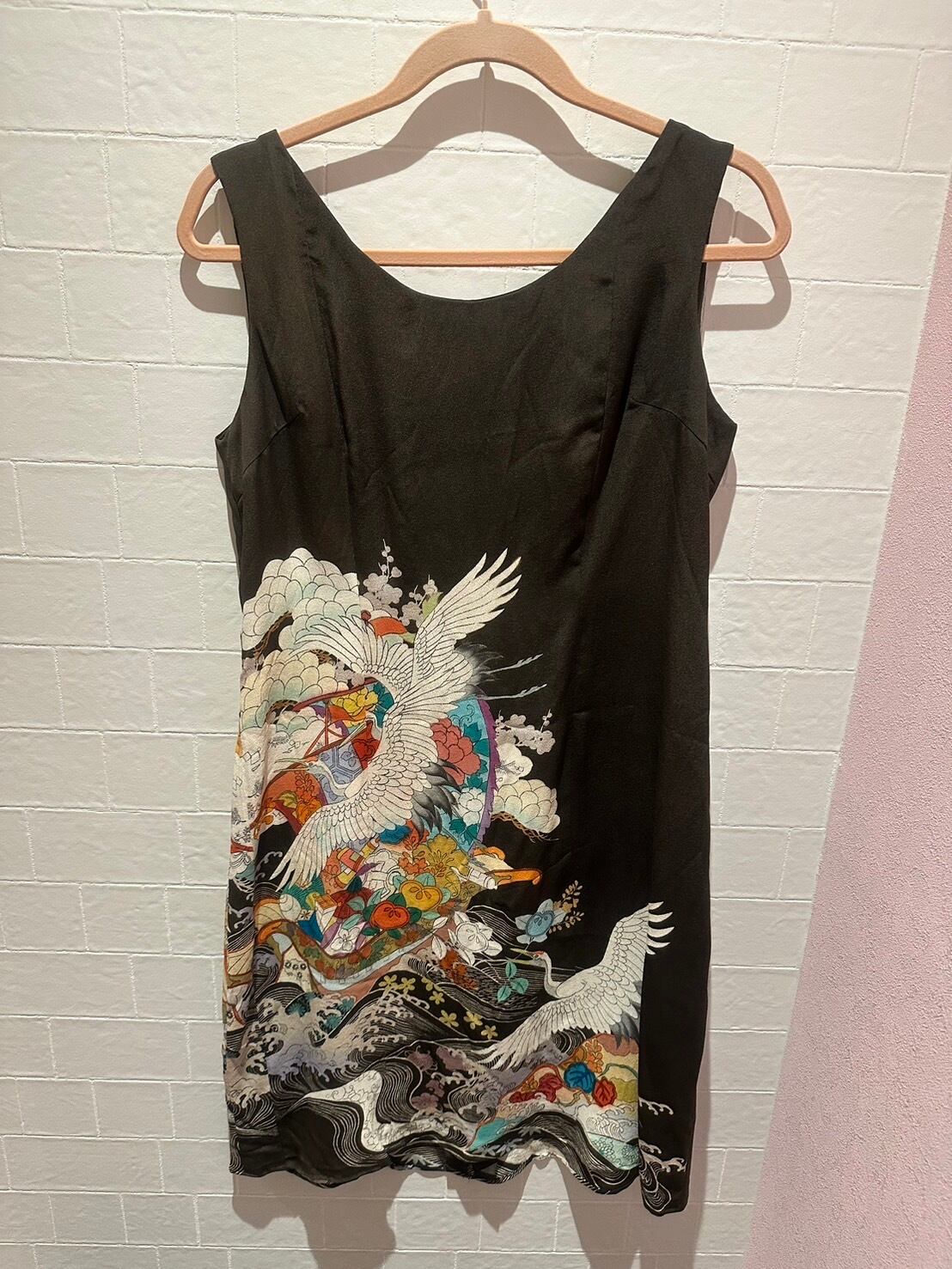 着物リメイク 黒留袖から生まれたシルク素材のノースリーブワンピース