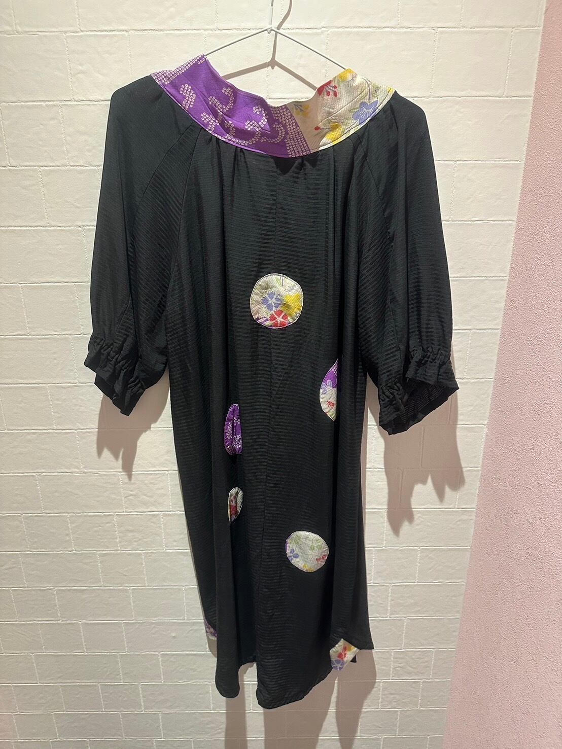 夏の着物 絽と振袖をリメイクしたふんわり長袖ワンピース