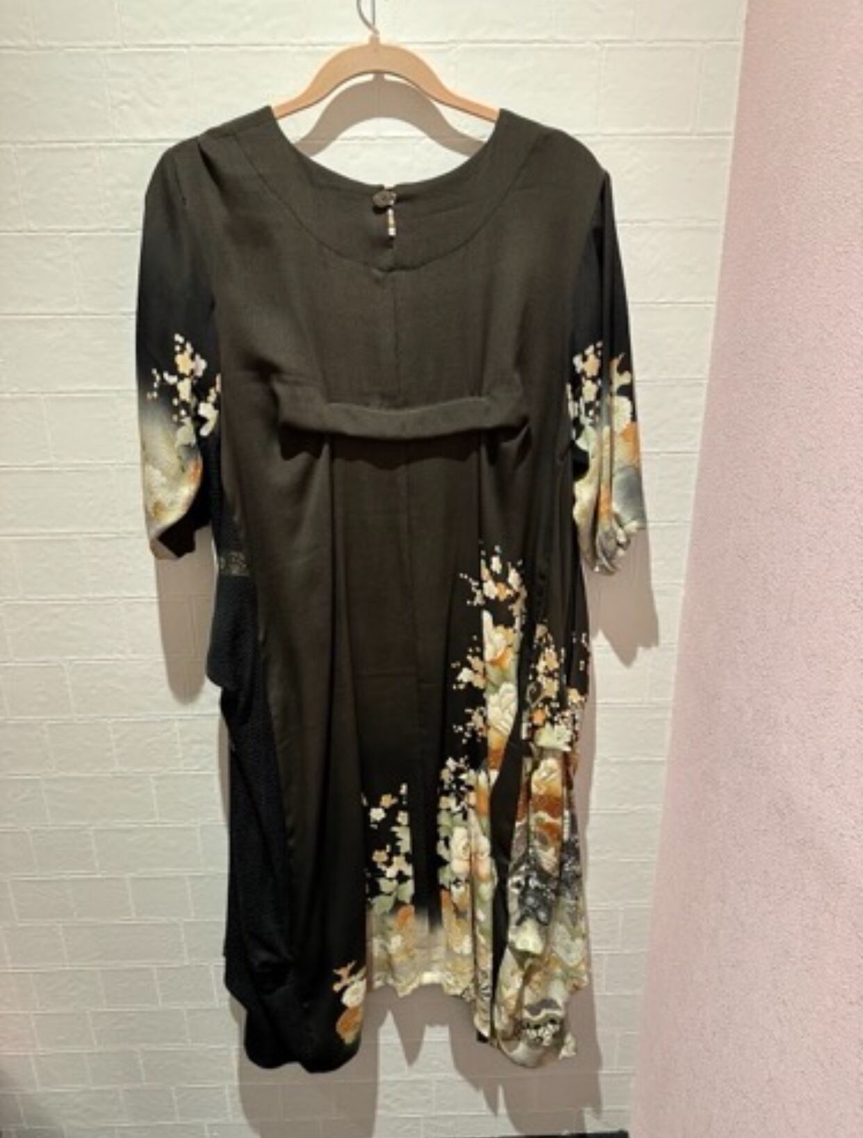 着物リメイク長袖ワンピース 黒留袖から生まれたシルク素材のワンピース