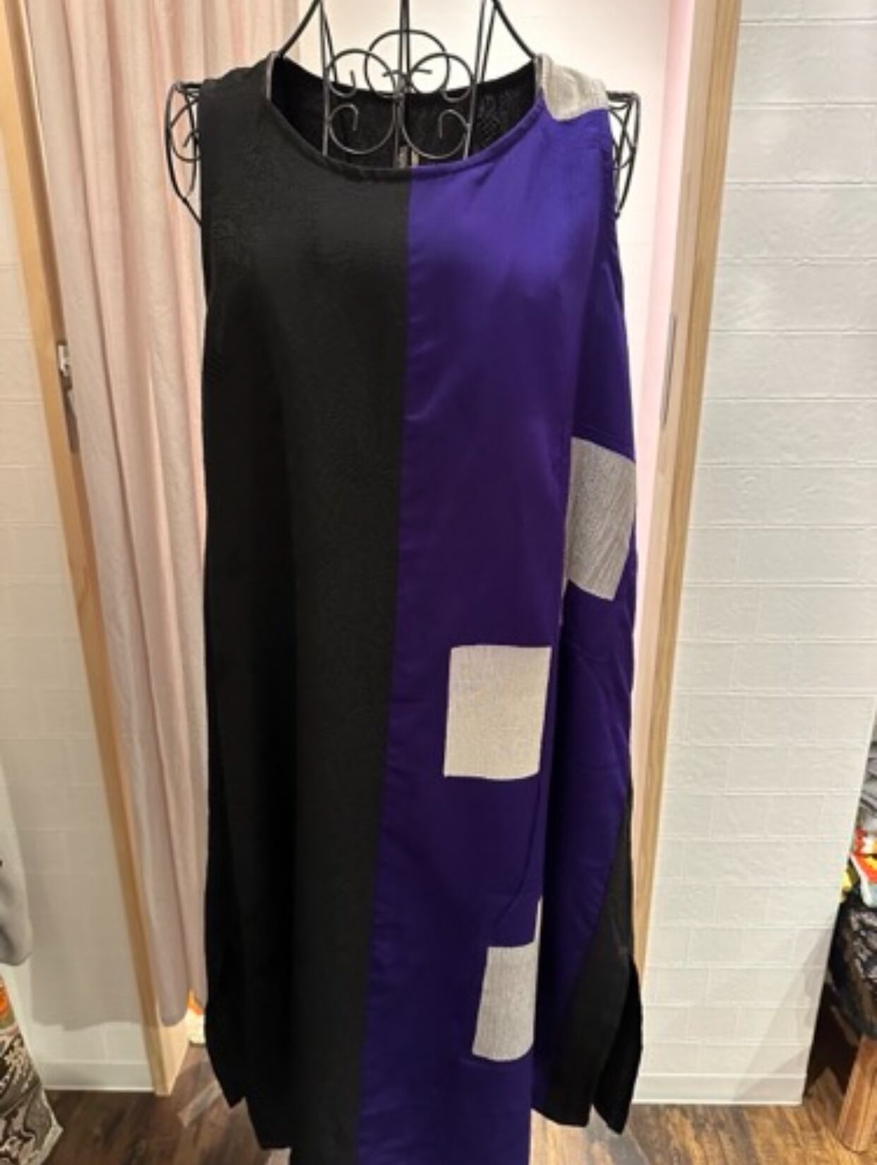 着物リメイクノースリーブツートーンカラーワンピース