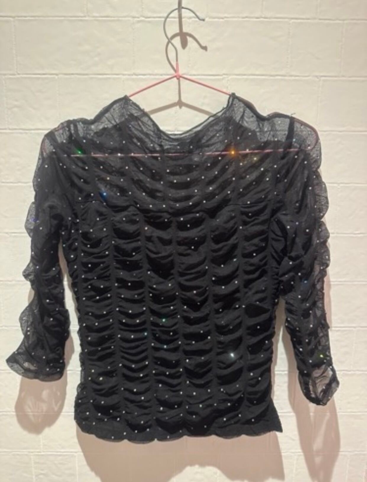 ・特徴:華やかなスパンコールが散りばめられた、エレガントなデザインの七分袖トップスです。ダンスシーンでの存在感を引き立てます。