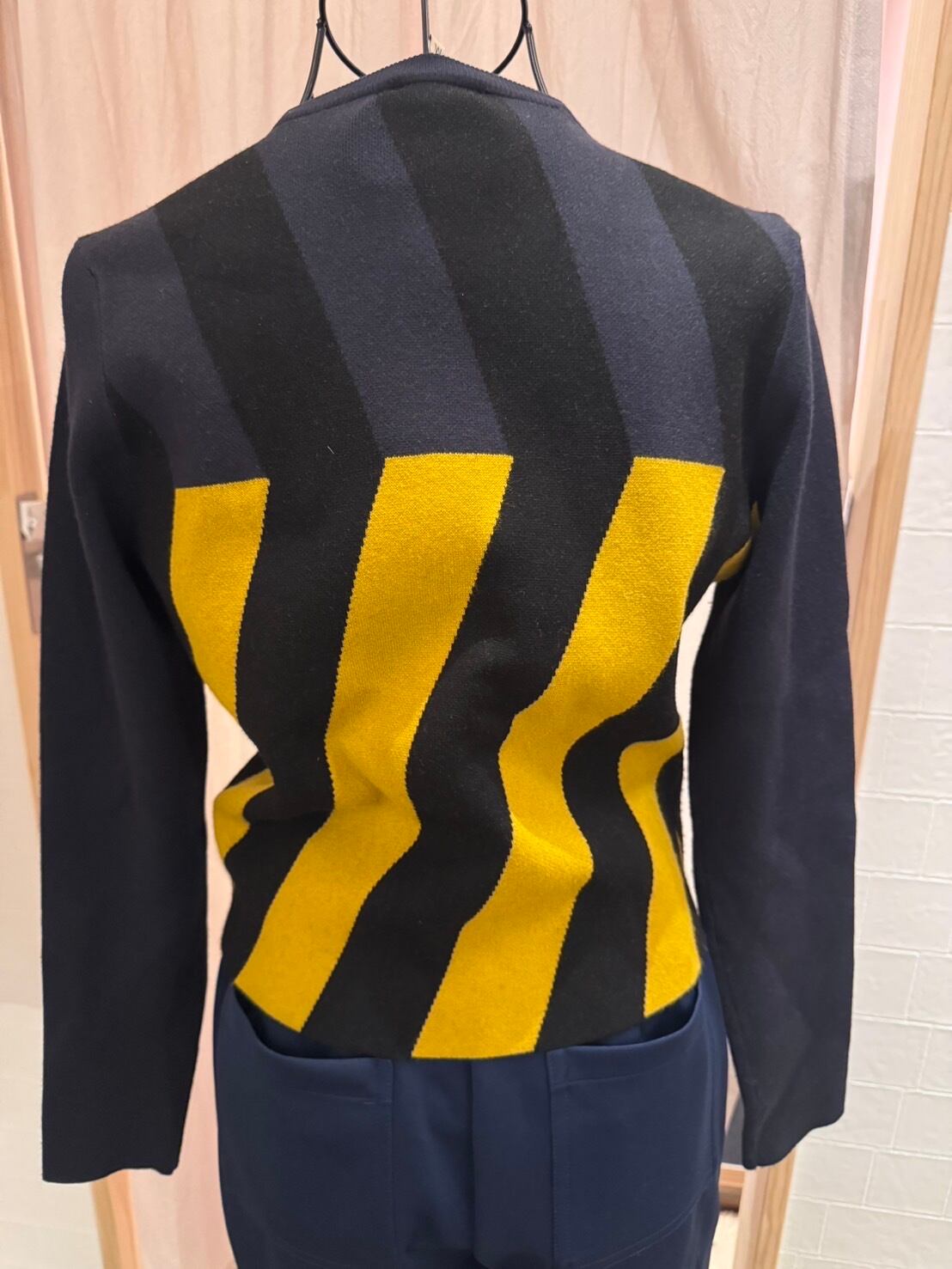 「KENZO Uネックジップアップニット ネイビー×イエロー Mサイズ」