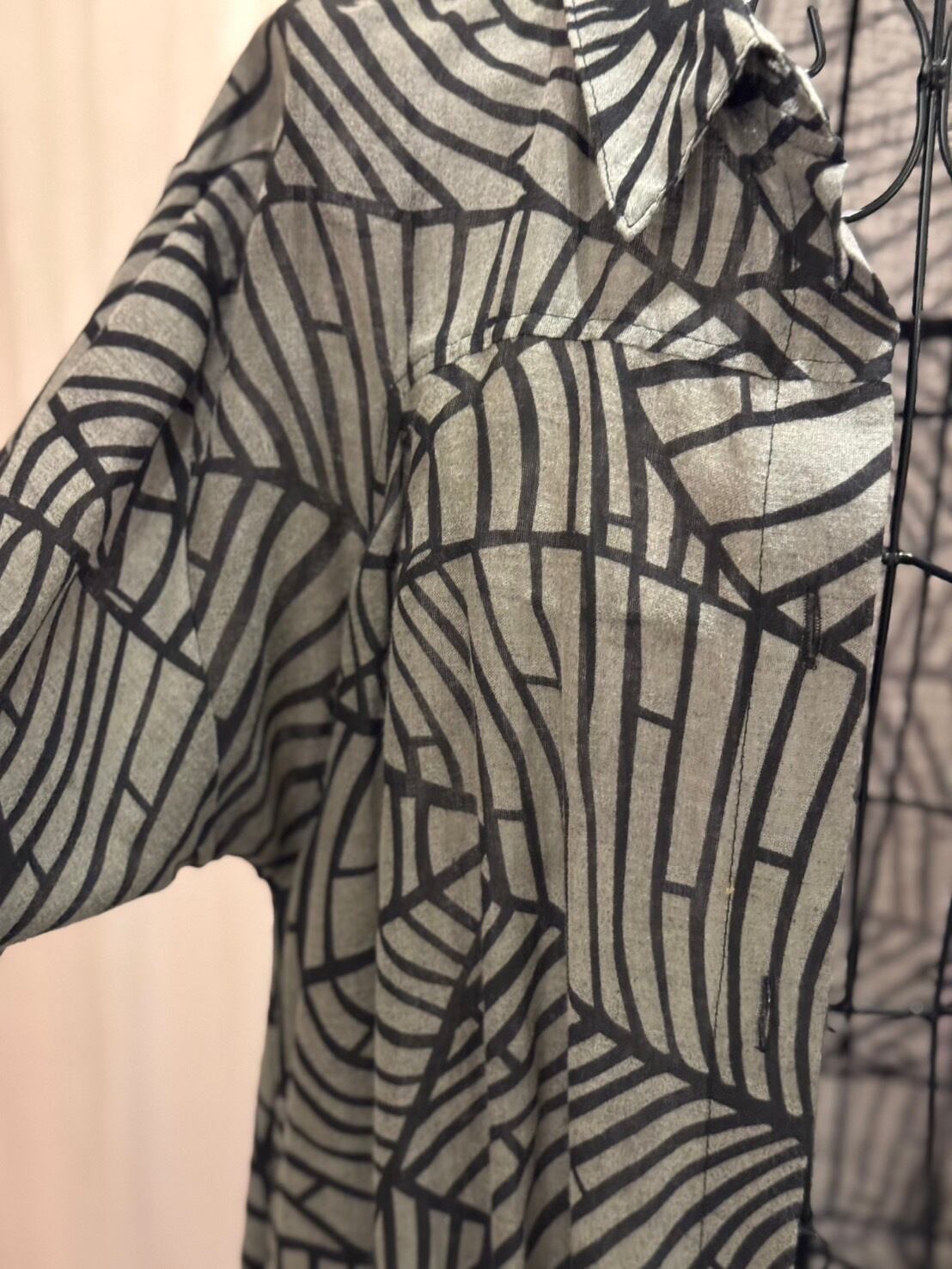 「シャツワンピース グレー×ブラック柄 タイ製」