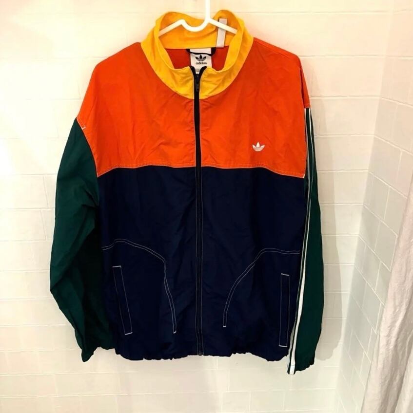 addidas ナイロンジャケット オレンジ×ネイビー×イエロー XLサイズ