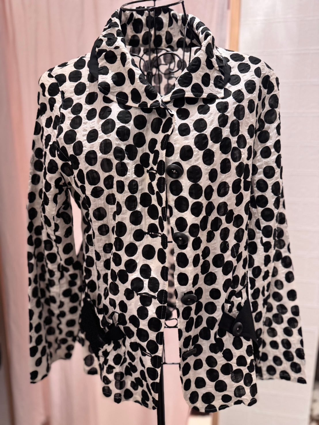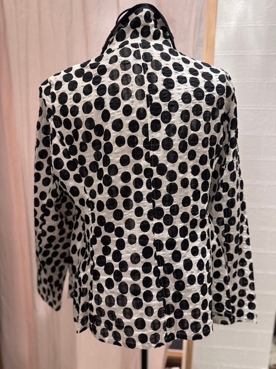 「SOPHIA ドット柄薄手ジャケット ホワイト×ブラック M-L」